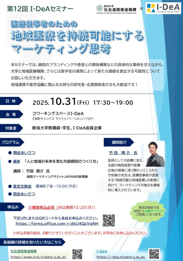 第12回I-DeAセミナー「医療従事者のための地域医療を持続可能にするマーケティング思考」を開催します!