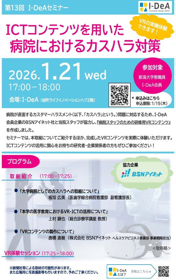 第13回I-DeAセミナー 「ICTコンテンツを用いた 病院におけるカスハラ対策」を開催します!